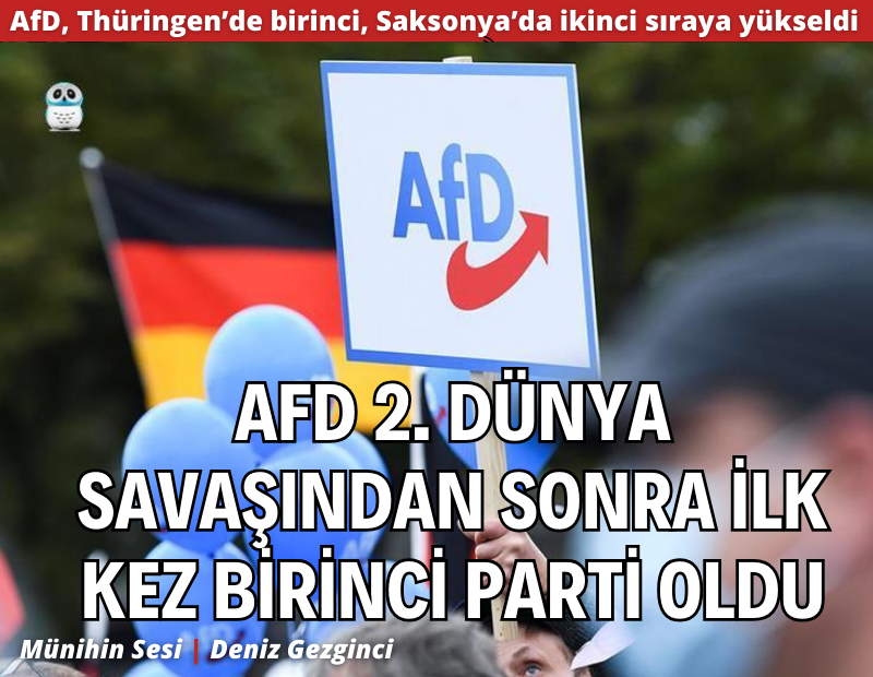 Almanya’da aşırı sağcı parti AFD (Almanya için Alternatif Partisi) Saksonya ve Thüringen’de geçtiğimiz hafta sonu yapılan seçimlerde büyük bir başarı elde etti. AfD, Thüringen’de birinci, Saksonya’da ikinci sıraya yükseldi. Bu seçim sonuçlarının ardından AfD, Thüringen’de aldığı 30,5 oy oranı ile 2. Dünya Savaşından sonra ilk kez birinci parti oldu.