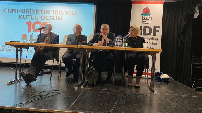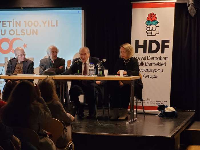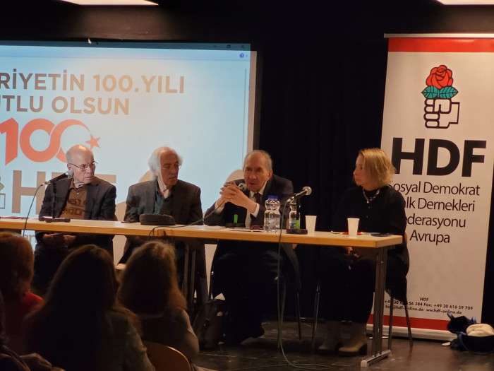Sosyal Demokrat Halk Dernekleri Federasyonu (HDF) tarafından Münih’te düzenlenen “Dünüyle bugünüyle Cumhuriyet” adlı sempozyumun konukları CHP eski Genel Başkanı Altan Öymen ve Kültür eski Bakanı Ercan Karakaş oldu.