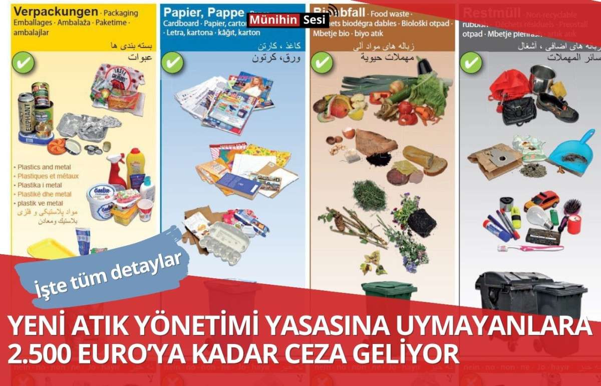 Almanya Çevre- Doğa Koruma- Nükleer Güvenlik ve Tüketici Koruma Bakanlığı'nın (BMUV) yasal düzenlemesi uyarınca 1 Mayıs 2025 tarihi itibari ile Yeni Atık Yönetimi Yasası yürürlüğe girecek. Bu yasa hem kiracıları hem de mülk sahiplerini ilgilendiriyor. Yasaya uymayanları ise büyük para cezaları bekliyor.