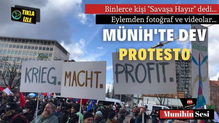 Münih’te düzenlenen Güvenlik Konferansı’nı protesto etmek için binlerce kişi sokağa döküldü. "NATO ülkelerinin savaş rotasını durdurun" sloganıyla yaklaşık üç bin kişi Münih’in meşhur meydanı Stachus'tan Marienplatz'a yürüdü.