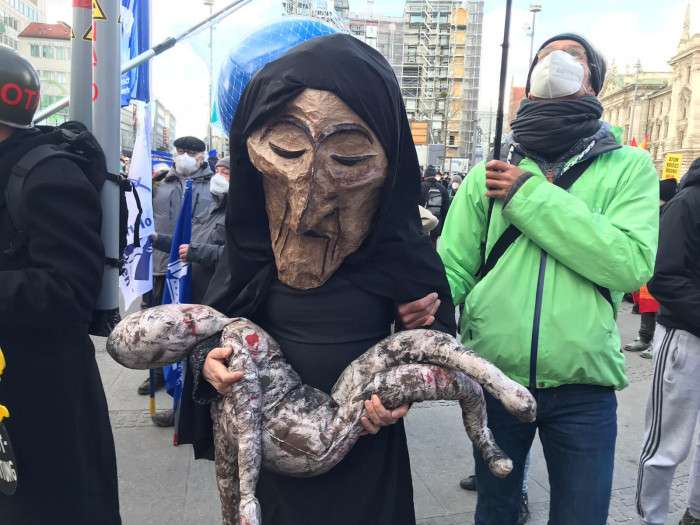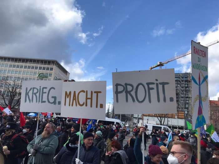 Göstericiler, NATO ülkelerinin savaş seyrine son verilmesi çağrısında bulundu. Nükleer silahların güncellenmesine, silah teslimatlarına veya NATO'nun doğuya doğru genişlemesine, Rusya-Ukrayna hattındaki gerilimin artmasına karşı konuşmalar yapıldı.