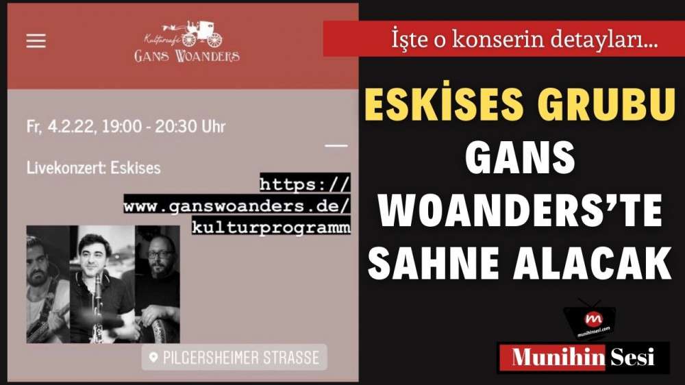 Münih’in ilginç mekanlarından Gans Woanders 04 Şubat Cuma akşamı saat 19.00'da Eskises grubunu ağırlayacak.