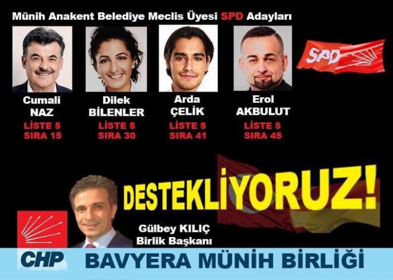 CHP Bavyera Münih Birliği, 15 Mart 2020’de Almanya’nın Bavyera eyaletinde gerçekleştirilecek olan yerel seçimlerde SPD’li adayları destekleyeceğini açıkladı.