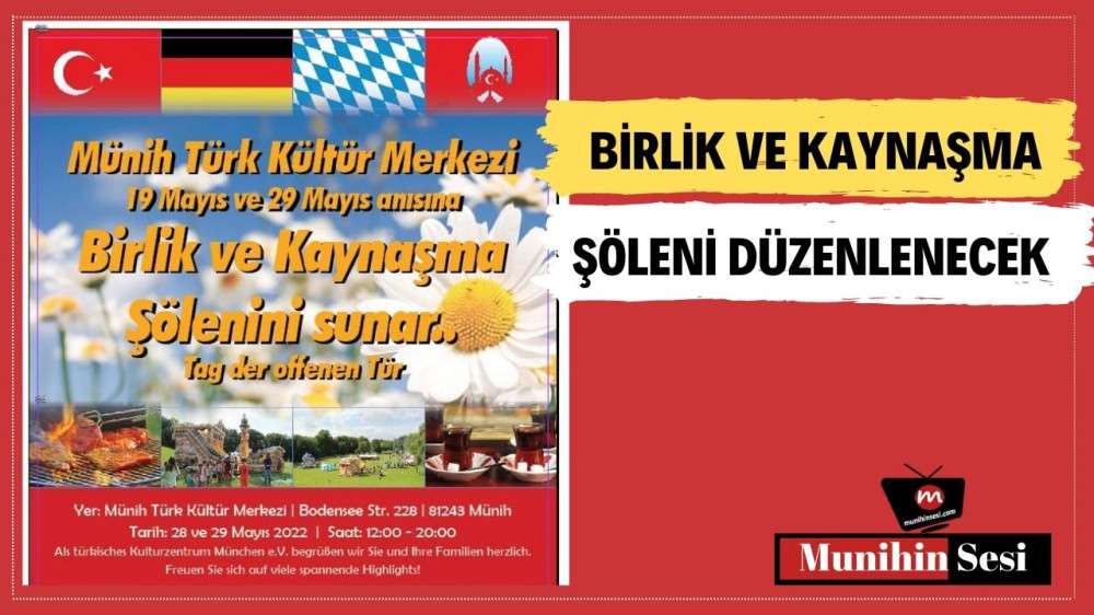 Münih Türk Kültür Merkezi tarafından 28-29 Mayıs tarihlerinde Birlik ve Kaynaşma Şöleni düzenlenecek.