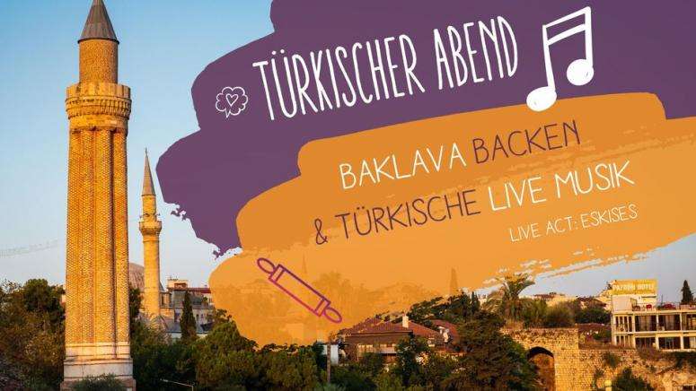Baklavayı herkes sever ama kimler yapmasını bilir? Münih 10 Eylül Perşembe akşamı ilginç bir etkinliğe sahne olacak. Pinakothek der Moderne müzesinin bahçesinde gerçekleştirilecek olan Türk akşamında konuklar 18.00-20.00 saatleri arasında baklava yapmayı öğrenecek daha sonra etkinliğin ikinci bölümünde Eskises grubu Türkçe şarkılardan oluşan bir konser verecek.