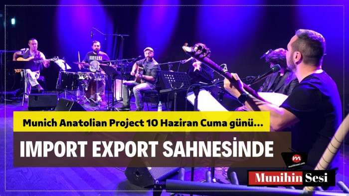 Anadolu Halk Türkülerini, geleneksel ve çağdaş unsurları harmanlayarak kendine has düzenlemeleriyle sunan müzik grubu M.A.P. (Munich Anatolian Project) 10 Haziran Cuma akşamı saat 20.00 itibari ile IMPORT EXPORT’ta sahne alacak.