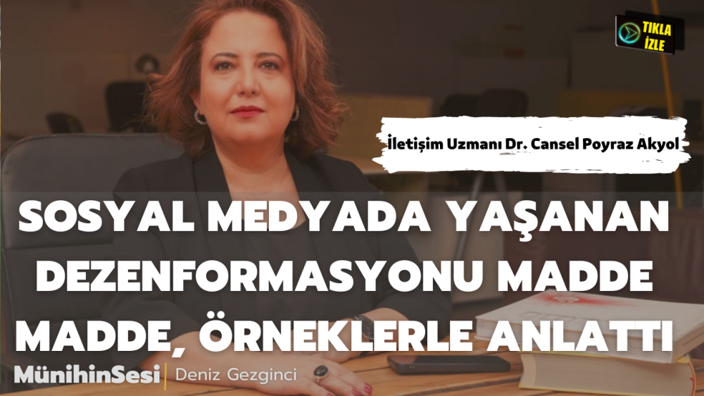 Beykent Üniversitesi Öğretim Üyesi ve İletişim Uzmanı Dr. Cansel Poyraz Akyol, sosyal medyada yaşanan bilgi kirliği üzerine çok önemli açıklamalarda bulundu. Deniz Gezginci'nin sorularını yanıtlayan Akyol; deprem sürecinde yaşanmış olaylardan örnekler vererek bilgi kirliliği konusunun ne kadar ciddi bir sorun olduğunu anlattı.