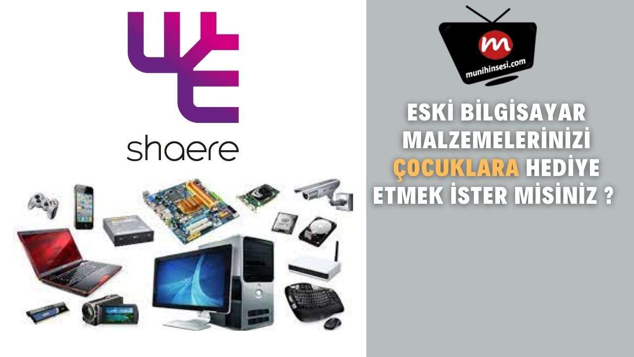 Sizler de kullanmadığınız bilgisayar cihazlarını shaere ile paylaşabilir, bir çocuğu sevindirebilirsiniz. Bir sosyal sorumluluk projesi olarak kurulan Shaere sizi katılmaya, şekillendirmeye, geliştirmeye, öğrenmeye, araştırmaya, yeniden düşünmeye, kalıpların dışında düşünmeye, ilham vermeye, tanıtmaya ve aktarmaya davet ediyor.