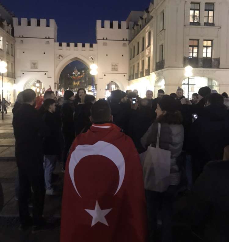 Münih’te aynı saatlerde ikinci bir gösteri de meşhur Stachus Meydanı’nda gerçekleştirdi. DİTİB (Diyanet İşleri Türk-İslam Birliği) ve IGMG (İslam Toplumu Milli Görüş) ün halka açık davetine Münih Türk Dernekler Birliği ve Münih Müslümanlar Konseyi de destek verince kısa sürede yaklaşık 150 kişi meydanda toplandı.