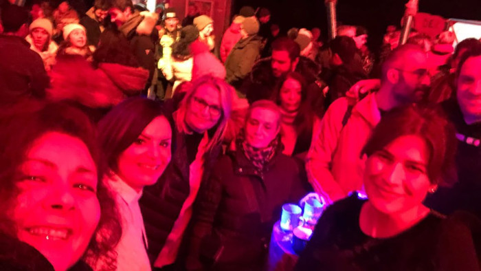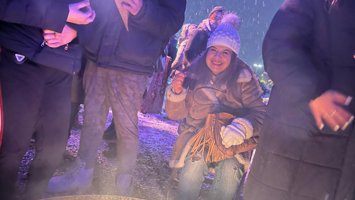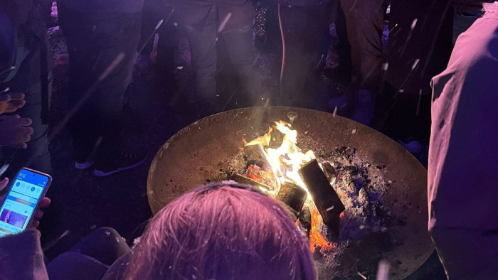 Çadırın içerisindeki konserin ardından birlikte Tollwood alanını gezen kitapseverler, soğuk ve kar yağışlı havaya rağmen ateşin başında sohbet etme fırsatı buldu.