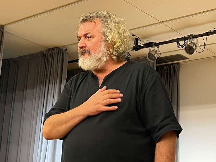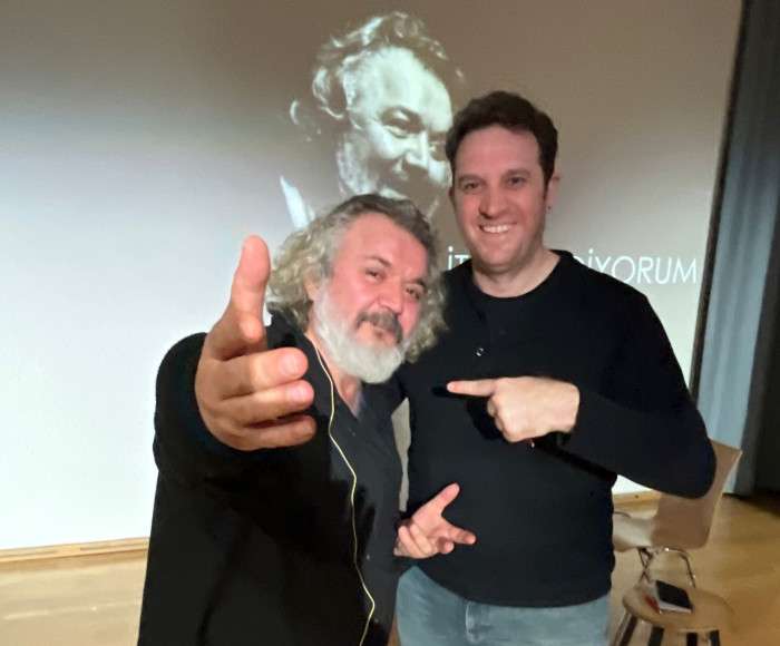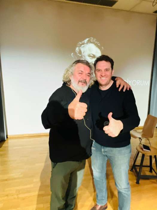 Müfit Can Saçıntı: Münih’e çok geldik, çok daha fazla gelmek istiyorum. Buradaki seyirciye bayılıyorum. Çok samimiler. Kırk yıllık arkadaşlarımla görüşmüş gibi hissediyorum. Burada kendimi biraz daha rahat hissediyorum. Çokta rahat davranmıyorum çünkü Türkiye’ye döneceğim aklıma geliyor. (Gülüşmeler…) İnşallah hep gelirim. Buradaki canlarımız çok ayrı. Vatan hasreti mi etkili oluyor bilmiyorum ama buradaki ekibimiz çok sıcak ilgi gösteriyorlar. Onların karşısında kendimi mahcup hissediyorum. Ben bir şey yapamıyormuşum gibi geliyor. Size de verdiğiniz destekten ötürü çok teşekkür ediyorum.