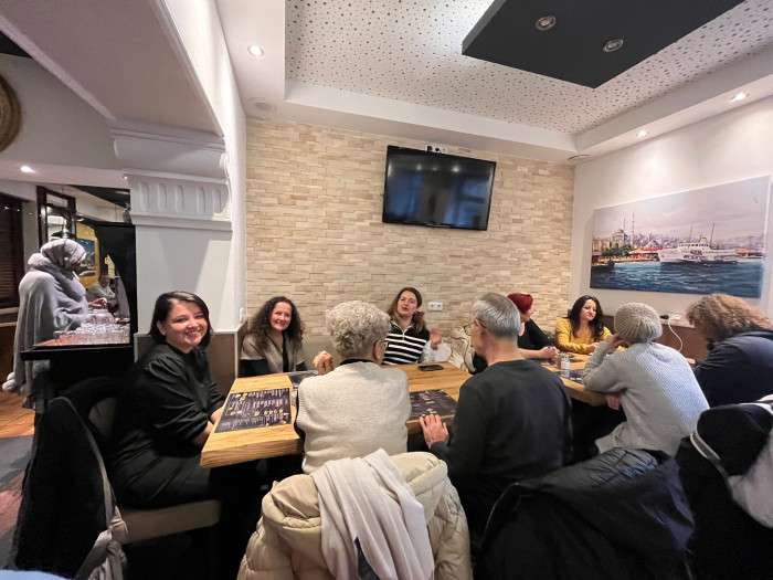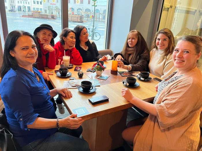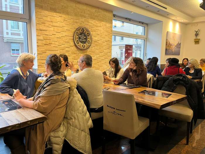 Müze ziyaretlerinin ardından Erciyes Restoran’ın meşhur Türk yemeklerinin tadına varan kitapseverler yemeğin ardından Augsburg’un çok farklı kültürlerini içerisinde barındıran mekânı Neruda Kültürkafe’ye geçildi. Yazar, Sanatçı ve Kültür Elçisi Fikret Yakaboylu Neruda Kafe hakkında bilgiler verdi. Münih Kitap Kulübü üyelerine kendi elleri ile demlediği çaydan ve böreklerden ikram etti.
