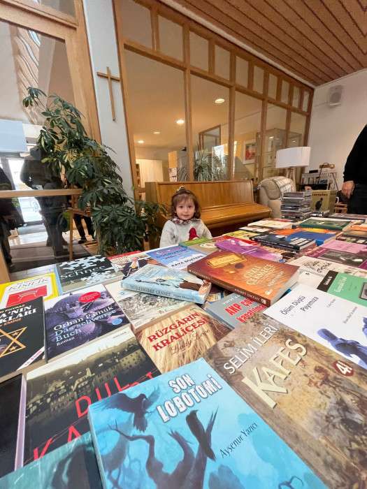 “Münih’te kimse Türkçe kitaba ulaşamıyorum demesin” sloganı ile Fürstenried Zentrum’da gerçekleştirilen ikinci el kitap pazarına kitaplarını sergilemek isteyenler erkenden gelerek sergilerini açtı.