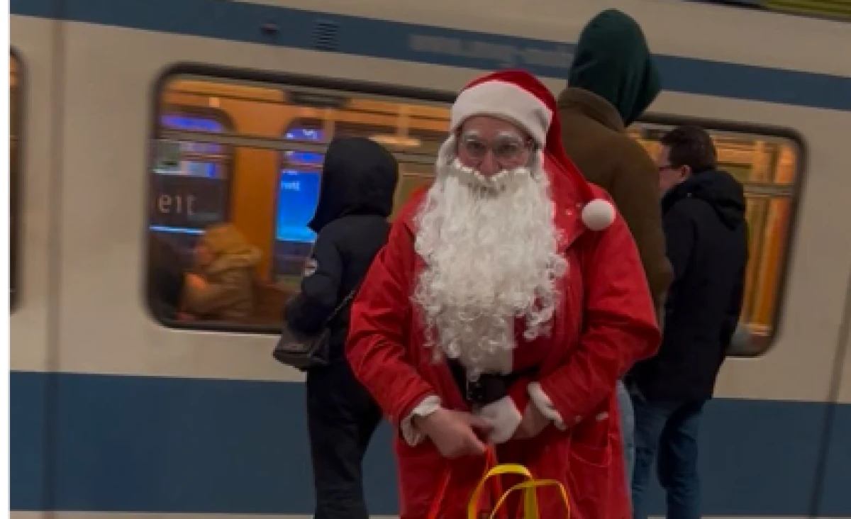 Yılbaşında çocuklara getirdiği oyuncaklarla bilinen Noel baba, bu sefer Almanya’nın Münih şehrindeki metro istasyonunda boş şişe toplarken görüntülendi.