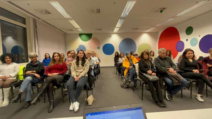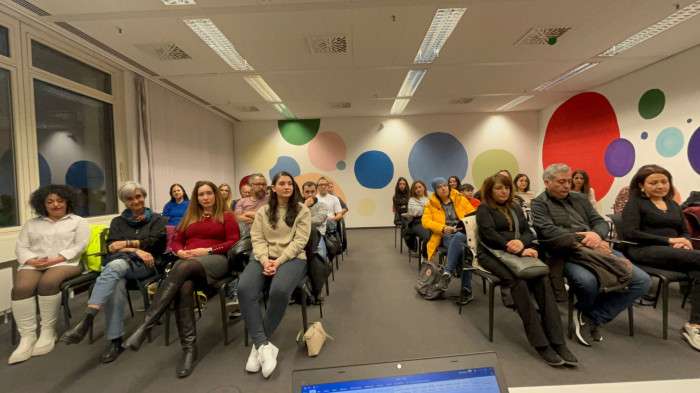 Gazeteci Deniz Gezginci’nin açılış konuşması ile başlayan toplantıda OKM Kültür ve Sanat Yönetmeni Ertuğrul Karakaya Nürnberg’de yirmi yıldır faaliyetlerini sürdüren Objektif Kültür Merkezi hakkında bilgiler verdi.