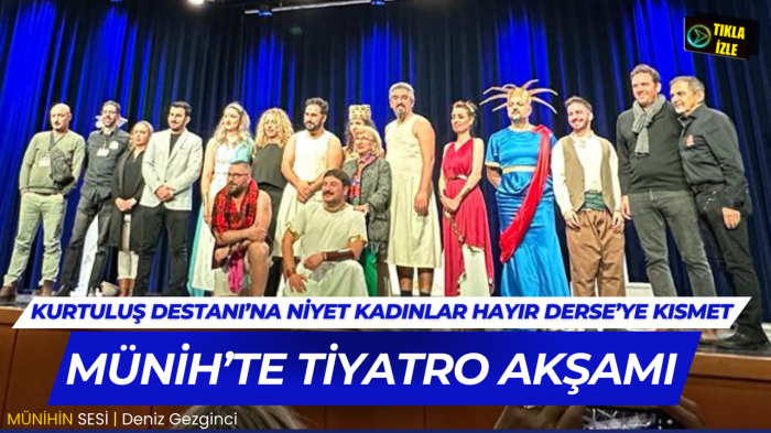 Münih’e Kurtuluş Destanı oyununu sergilemek üzerine geleceklerini ancak oyunun başrol oyuncularının birinin kardeşinin vefat etmesi nedeni ile “Kadınlar Hayır Derse” oyunu ile izleyenlerin karşısına çıkmak durumunda kaldıklarını belirten Ertuğrul Karakaya, Kurtuluş Destanı oyununun 14 Ocak’ta Münih’te sahneleneceğinin müjdesini verdi. Karakaya, Kadınlar Hayır Derse oyununun Münih’te sahnelenmesinde emeği geçen El Ele Engelliler Federasyonu Onursal Başkanı Adalet Günel’e, Münih’in Sesi- Münih Kitap Kulübü Kurucusu Gazeteci Deniz Gezginci’ye ve Güney Kuyumculuk sahibi Nevzat Güney’e teşekkür etti.