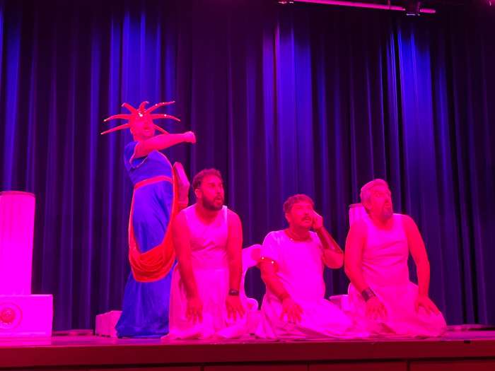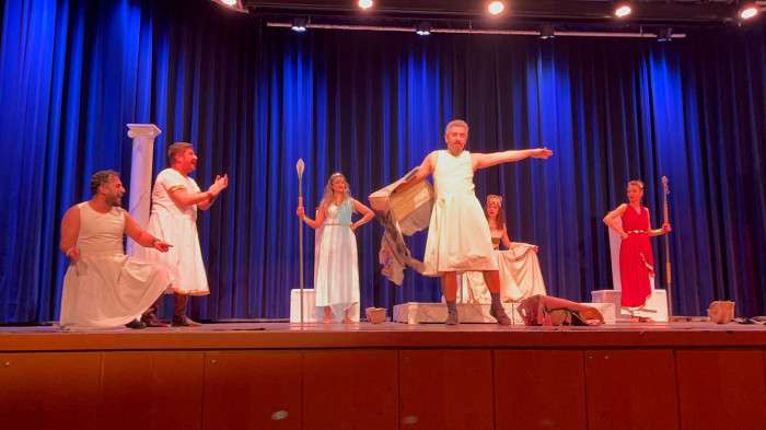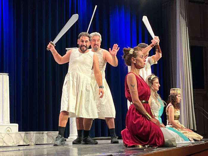 Arazi kavgası yüzünden birbirlerini öldüren kocalarının arkasından ağıt yakan kadınların, binlerce yıl önce savaşan kocalarını savaşmaktan caydıran kadınların çabasını anlatan oyun izleyenlerden büyük alkış aldı.