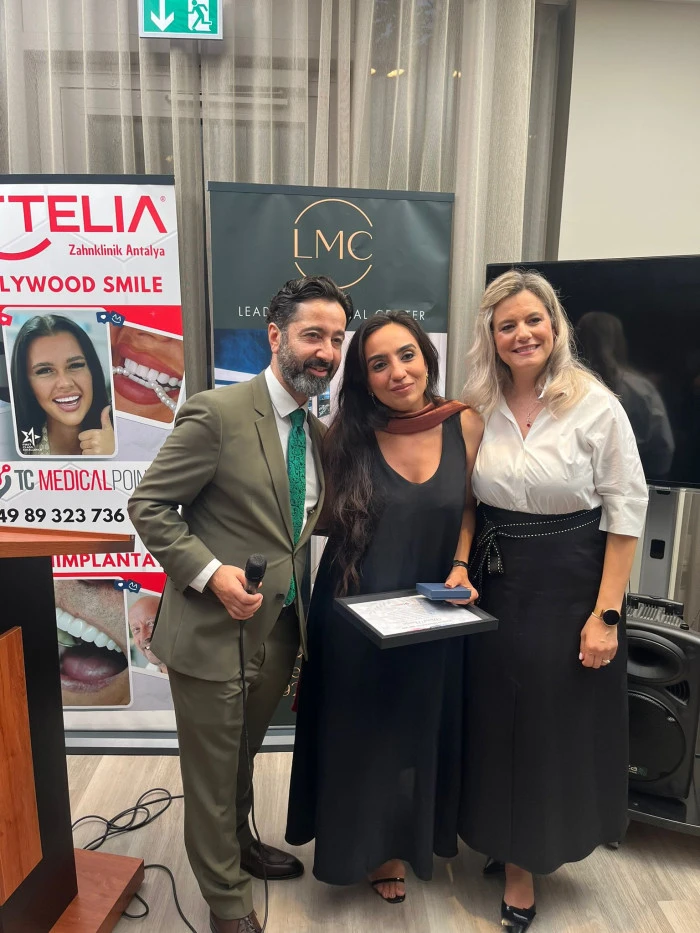 Yaptığı Almanca konuşmaya geceye katılan herkese teşekkür ederek başlayan Tuncay Yıldırım; “İki yıllık süreçte T.C. Medical Point olarak önümüze taşlar konuldu, bu taşları tek tek ayırdık ve üzerinden geçtik. Bu zorluklarla boğuşurken aynı zamanda çok güzel dostluklar edindik, kısa sürede başarılara imza attık. Bu zorlu süreçte bizi yalnız bırakmayan ve bugün aramızda olan herkese çok teşekkür ediyoruz” dedi. Tuncay Yıldırım, T.C. Medical Point’in iki yıllık süreci hakkında konuklara bilgiler verdi.