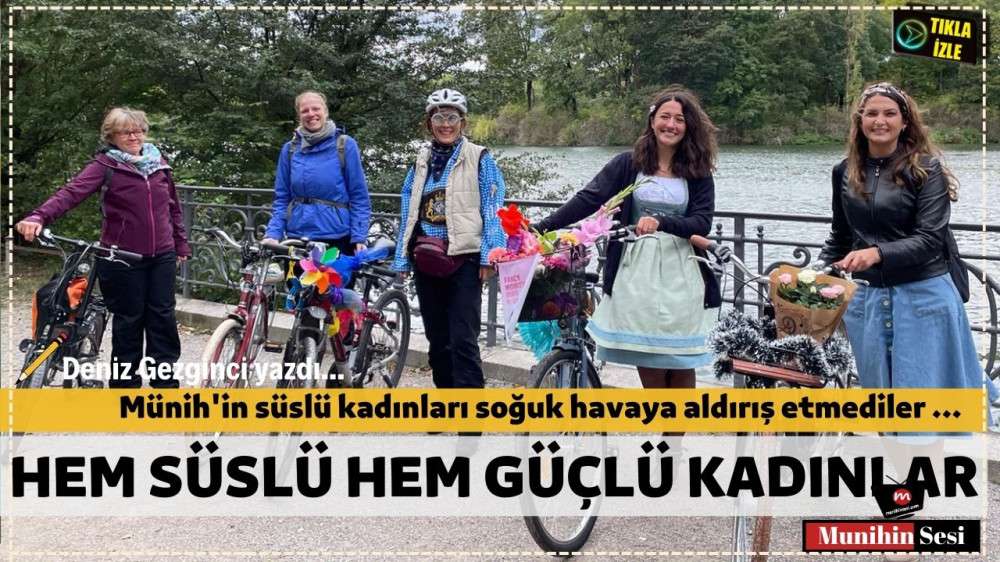 Türkiye ve dünyada iki yüzü aşkın şehirde aynı anda düzenlenen Süslü Kadınlar Bisiklet Turu Almanya’nın Münih şehrinde de renkli görüntülere sahne oldu. Süslü Kadınlar soğuk ve yağmurlu havaya rağmen şık elbiseleri, topuklu ayakkabılarıyla Münih sokaklarında özgürlüğe pedal çevirdi.