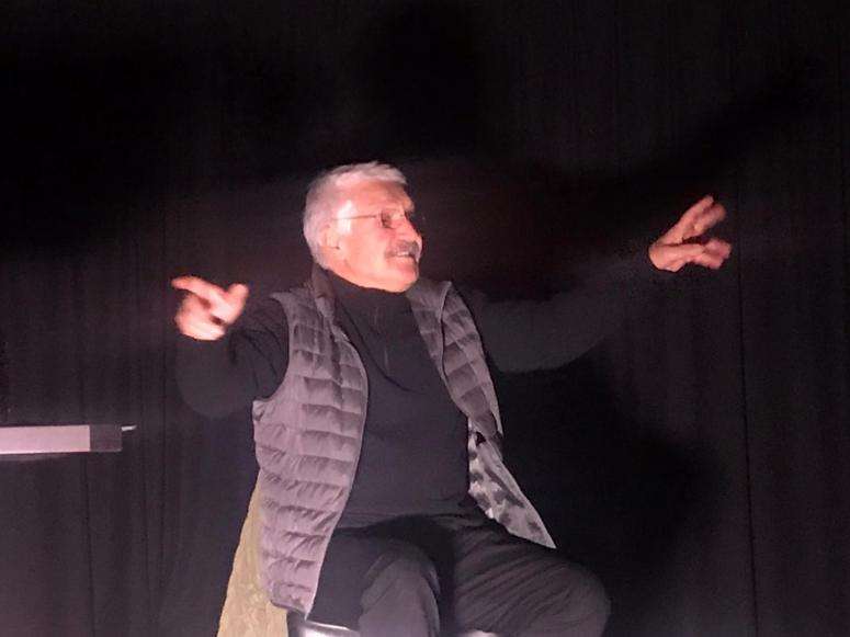 Tek kişilik oyununa seyircilerden özür dileyerek başlayan usta oyuncu; “Bu kadar medeniyetin, bu kadar tekniğin bol olduğu, her şeyin var olduğu Almanya’da ama maalesef yine bir Türk işletmecinin işlettiği bu salonda sizleri böyle ağırlamak istemezdim. Bu tamamen cahillikten kaynaklanan bir şey ne yazık ki. Burayı işleten vatandaş burada ne yapılacağını bilseydi keşke. Burada sünnet düğünü bile yapılmaz, hiçbir şey yapılmaz. Sadece buraya gelirse sarhoşlar gelir, sarhoş eğlendirilir buradan da para kazanmak o insana yeterde artar bile. O nedenle fazla sinirimizi bozmadan hikâyemize başlayalım” dedi.
