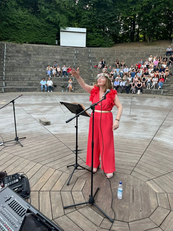 Almanya’nın ilk ve tek pop müziği korosu Viva La Pop, üçüncü konserini açık havada, Westpark’ta göl kenarındaki Kino Mond und Sterne Amphi Theater’da verdi.