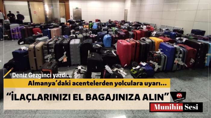 Öte yandan Almanya’da bir çok acente yolcularına gönderdiği mesajda; “Son günlerde Avrupa çıkışlı bazı uçuşlarda havalimanı personelinin yetersiz sayıda olması nedeni ile malesef bagajlar yüklenemiyor. Önümüzdeki günlerde de bu sorunun devam edeceğini tahmin ediyoruz. Bu sebepten dolayı özellikle sağlık sorunu olan yolcularımızın ilaçlarını kabin içine beraberine almalarıni tavsiye ediyoruz” denildi.