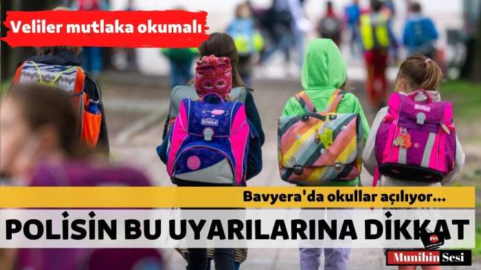 Bavyera bölgesinde okulların yarın açılması nedeni ile Münih Polisi önemli uyarılarda bulundu. Okul yolları rotasında daha sıkı güvenlik önmeleri alınacak. Yetkililer bu yollarda sürücülerin daha dikkatli olması gerektiği ile ilgili çağrıda bulundu.