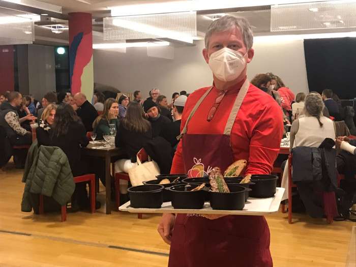 Yaklaşık 200 kişinin katıldığı gecede kurtarılmış yiyeceklerden yapılan üç çeşit vejetaryen menü yardımseverlerin beğenisini kazandı.