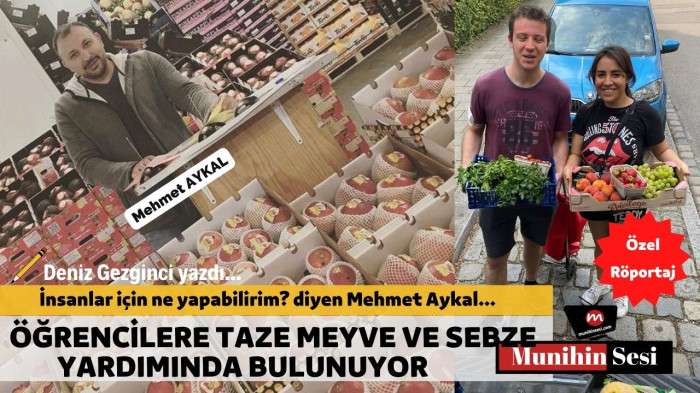 Bu gerçekleştirdiği güzel hareketin Münih’te güzel şeyler olduğunu bilsinler ısrarım üzerine her ne kadar; “Ben bu iyiliği insanlar bilsin istemiyorum. İyilik yapıyorsanız Allah ile kul arasında kalmalıdır. İyilik yaparken ben yaptım demek olmaz” diye geri çevirmek istese de başkalarına örnek olması için kendisini ikna ediyor ve bu keyifli söyleşiyi gerçekleştiriyorum. Deniz Gezginci: Mehmet Bey yolunuz Almanya'ya nasıl düştü? Mehmet Aykal: Mardinli bir ailenin çocuğuyum. Türkiye’de Arkeoloji Bilimi okudum. 1995 yılında Arkeoloji öğrencisi olarak Hamburg’a geldim. 1998 yılına kadar Hamburg’da yaşadım.  Daha sonra yeniden Türkiye’ye dönüp kazı çalışmalarına katıldım. Sümer tabletleri üzerine çalışmalarda bulundum. Tel Aviv Üniversitesi öğrencileriyle ortaklaşa gerçekleştirdiğimiz bir kazı çalışması için Mısır’a gidip bir süre orada kaldım.  Arapça ve Kürtçe biliyorum. 2010 yılında evlendim. Eğer kazı çalışmalarına gidiyorsanız bu iş sizin yıllarınızı alıyor ve evliyseniz çalışmalara katılmak çok zor oluyor. Yorulduğumu hissettim ve ticarete atıldım. Hayat şartları bizi bu tarafa getirdi diyebilirim.   Deniz Gezginci: Şu an burada neler yapıyorsunuz? Mehmet Aykal: Münih’te marketlerim vardı onları koronadan önce devrettim. Şu an İspanya, Hollanda, İtalya ve Türkiye gibi ülkelerden meyve sebze getirip burada Adalet Bakanlığı’nın bünyesinde bulunan beş ayrı cezaevinin ihtiyaçlarını karşılıyorum. Deniz Gezginci: Öğrencilere meyve ve sebze yardımında bulunmaya nasıl karar verdiniz? Mehmet Aykal: Münihin Sesi Sosyal Yardımlaşma ve Dayanışma Platformu’nun öğrencilere yardım ettiğini sosyal medya üzerinden gördüm ve bu benim çok hoşuma gitti. İnsanların size yazdıklarını takip ediyordum. Her birinin sorunu ile ilgilenmeniz, onların taleplerine cevap vermeniz çok hoşuma gitti. Acaba ben de bu oluşuma nasıl katkıda bulunabilirim diye düşündüm. Elimden bir şey gelirse de yapmak istedim. Ben de öğrenciydim, ben de o zorlukları gördüm. İnsan yokluktan gelince, yoklukla harmanlanmışsanız o sizde çok farklı bir etki yaratıyor. Yaralı bir hayvanı, bir canlıyı bile görseniz o yarasını sarmak istersiniz. İnsani duygularınız daha da kabarıyor. Deniz Gezginci: Yardım ettiğinizi yazmamı pek istemediniz? Mehmet Aykal: Ben bu iyiliği insanlar bilsin istemiyorum. İyilik yapıyorsanız Allah ile kul arasında kalmalıdır. İyilik yaparken ben yaptım demek olmaz. Bu dünyada kendimi emanetçi ve bir aracı olarak görüyorum. Bir şey yapıyorsanız, o sorumluluklar sana verildiği için yapıyorsunuz.  Yaptığım şeyi de çok abartmamak gerekiyor. İnsanlara örnek olursa sevinirim. Ben bu paylaşımı sizin de organizasyonunuz ile sonuna kadar devam ettirmek istiyorum. Daha farklı sebze ve meyveleri haftada bir iki kere ihtiyacı olan insanlara ulaştırabilirim. Bir başkası da bir başka yardımda bulunursa ona da sevinirim. Deniz Gezginci: Almanya’daki Türk öğrencilere yardım etmek nasıl bir duygu? Mehmet Aykal: Ben bu yardımı uzun süredir insanların diline, dinine, ırkına bakmadan zaten elimden geldiğince gerçekleştiriyordum. Meyve ve sebzeleri kiliselere, mülteci kamplarına gönderiyorum. Sokaktan geçen, durumu kötü insanlara da yardım etmeyi severim. Ancak tabii kendi insanıma yardımcı olmak, öğrenci arkadaşlarıma destek olmak benim için daha anlamlı.  Çünkü ben de o zorluğu çektim, ben de öğrenci oldum. Ancak bu yardımları yaparken insanları rencide etmemek gerekiyor. Öğrenci arkadaşlar meyve ve sebzeleri geldiler, aldılar, sevindiler. Ben de sevindim. İnsanları tanımış oldum. Gelenler arasında Mühendislik okuyan, Tıp okuyan arkadaşlar var. Her biri pırıl pırıl gençler.  İnsanlarla diyaloğa geçmeyi, onların gözlerindeki mutluluğu görmeyi seviyorum.  Ben bu yardımları kişisel bir amaç için yapmıyorum. İnsanları tanımak, onların fikirlerini duymak size farklı güzel duygular yaşatıyor.  Deniz Gezginci: Peki öğrencilere bu yardımları nasıl ulaştırıyorsunuz? Mehmet Aykal: Halde benim bir depom var malları orada toptan olarak tutuyorum. Yardıma ihtiyacı olan insanlar gelip oradan alıyorlar.  Her çeşit insan geliyor. Türklere biraz daha özen gösteriyorum. Ancak şöyle bir sorunumuz var. Birkaç pilot bölge seçersek bu yardımları öğrencilere ulaştırmamız daha kolay olur. Her biri ayrı yerlerde olunca yetişemiyorum. O nedenle kendi evimin adresini verdim. Şu an öğrenciler benim evimden gelip alıyorlar.   Deniz Gezginci-  Münih