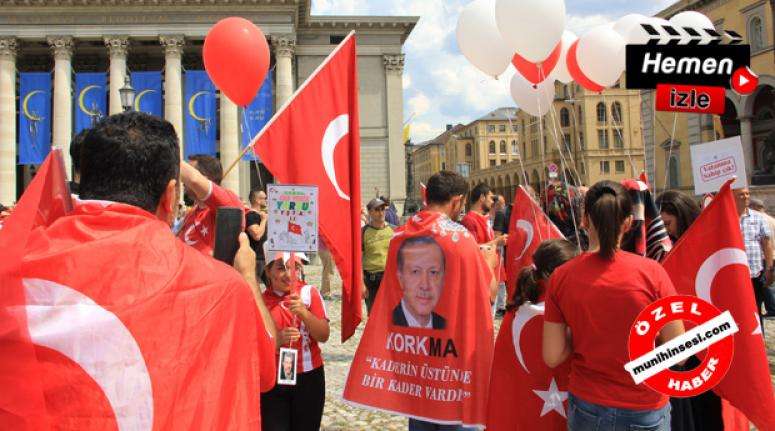 UID (Uluslararası Demokratlar Birliği) organizasyonu ile Max-Joseph-Platz’da toplanan yaklaşık beş yüz Türk, bayrakları ve balonları ile birlikte meydanı doldurdu.