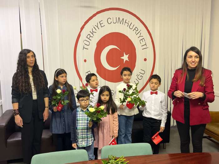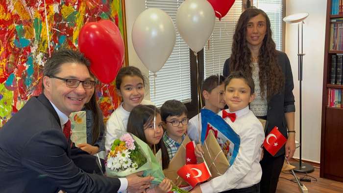 Yüce önder Mustafa Kemal Atatürk’ün tüm dünya çocuklarına armağanı olan 23 Nisan sadece Türkiye’de değil Almanya’da da coşku ile kutlandı. Münih Başkonsolosluğunda düzenlenen kutlama programına Türkçe ve Türk Kültürü Öğretmeni Çiğdem Ayhan eşliğinde Markt Schwaben İlkokulundan ikinci sınıf öğrencisi Emre Tüymen, üçüncü sınıf öğrencileri Zehra Tokgöz, Kevser Tokgöz ve Ömer Tokgöz, dördüncü sınıf öğrencisi Emirhan Tüymen ile Anni Pickert İlkokulundan dördüncü sınıf öğrencisi Talia Deliorman katıldı.