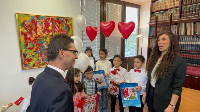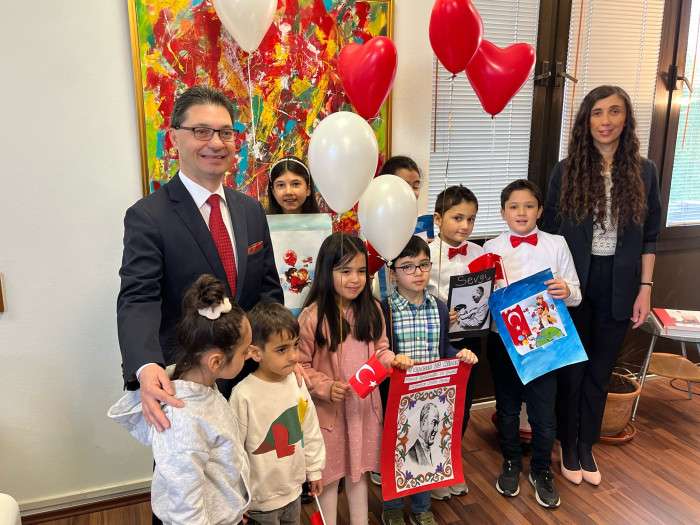 23 Nisan Ulusal Egemenlik ve Çocuk Bayramı Türkiye’de olduğu gibi Almanya’da da coşku ile kutlandı. Almanya’nın Münih Başkonsolosluğu’nda düzenlenen törende Başkonsolos Süalp Erdoğan’ın koltuğuna oturan öğrenciler tüm çocukların mutlu olduğu bir dünya dileğinde bulundu.