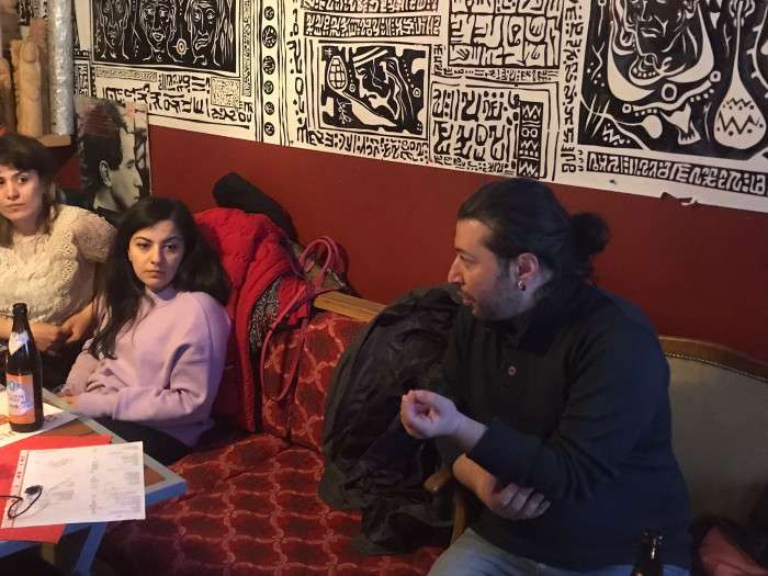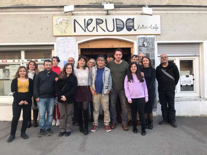 Fuggerei gezisinin ardından Augsburg’un çok farklı kültürlerini içerisinde barındıran mekanı Neruda Kültürkafe’ye geçildi. Yazar, Sanatçı ve Kültür Elçisi Fikret Yakaboylu Neruda Kafe hakkında bilgiler verdi. Münih Kitap Kulübü üyelerine kendi hazırladıkları böreklerden ikram etti. Münih Kitap Kulübü kurucusu Gazeteci Deniz Gezginci Münih Kitap Kulübü’nün faaliyetleri hakkında bilgiler verdi. Karşılıklı sohbet şeklinde, oldukça samimi bir ortamda geçen konuşmaların ardından Dramaturg Ahmet Altunsoy Bertolt Brecht hakkında bir sunum yaptı ve Geleneksel Türk Tiyatrosu ile Brecht’in epik tiyatrosunun ortak yönlerinden bahsetti.