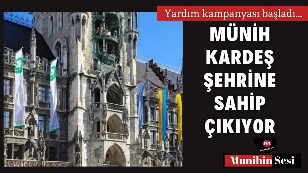 Kiev’i kardeş şehir ilan eden Münih Belediyesi, Rusya’nın önceki gün savaş başlattığı Ukrayna’ya destek için kolları sıvadı. Belediye Binasına Ukrayna bayrağı asıldı. Bu geceden itibaren saat 18.00'den sonra belediye binası ve Olimpiyat Kulesine Ukrayna ulusal renkleri yansıtılacak.