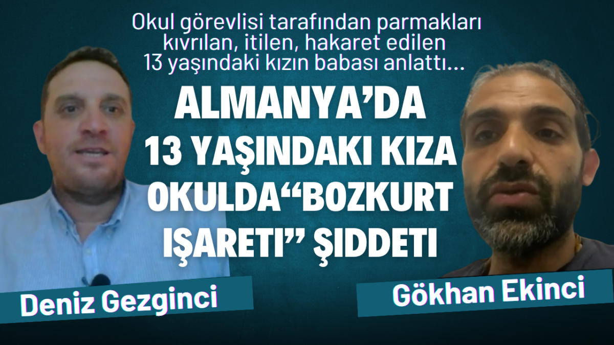 Bir futbolcunun sevinç esnasında yaptığı bozkurt işareti büyüdü, büyütüldü önce sporun dışına çıktı, sonra siyasete bulaştı, şimdi de okullara kadar sıçradı. Almanya’nın Münih şehrinde bir Gymnasium’da 13 yaşındaki 6. Sınıf öğrencisi bir Türk kızı, teneffüste bozkurt selamı yaptı diye okulda ders yardımı veren bir görevli tarafından parmakları sıkıldı, kıvrıldı, itildi, hakarete uğradı. Almanya’da yaşan 13 yaşındaki 6. Sınıf öğrencisi kızın babası Gökhan Ekinci yaşadıklarını Deniz Gezginci’ye anlattı.