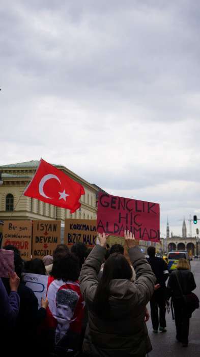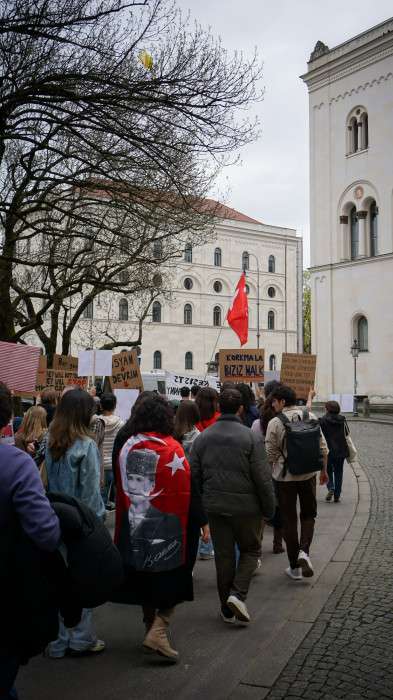 Türkiye’deki arkadaşlarına destek için eylemlerine devam eden Münih Öğrenci Birliği, geçtiğimiz hafta pazar günü tutuklanan arkadaşlarına destek vermek için yürüyüş düzenledi.