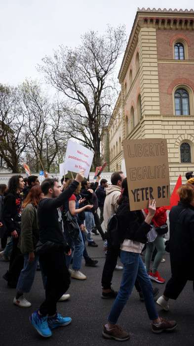 Geschwister-Scholl-Platz'tan polis eşliğinde başlayan yürüyüş kortejine yol boyunca da katılım ve ilgi büyük oldu. Sadece gençlerle sınırlı kalmayan, duyarlı her yaştan vatandaşın da katılımıyla daha da büyüyen topluluk Odeonsplatz'a kadar şarkılar ve sloganlar atarak yürüdü. Ayrıca yol boyunca yabancıların da ilgisi yüksekti. Pek çok farklı çağrıyı içeren özgün pankartlar ile tamamlanan yürüyüşün ardından Odeonsplatz'ta farklı dillerde yürüyüşün amacı dile getirilerek görünürlük ve farkındalık oluşturuldu.