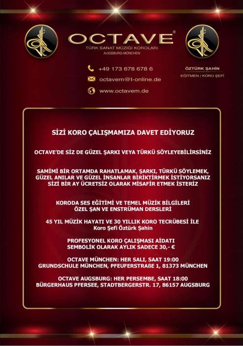Profesyonel koro çalışması aidatı sembolik olarak aylık sadece 30 Euro…