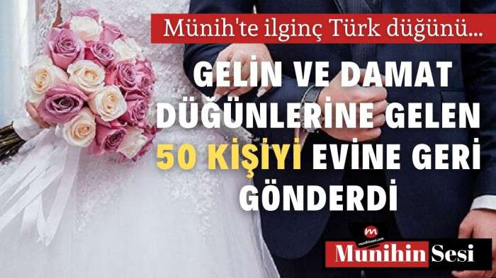 Almanya’nın Münih şehrinde önceki gün ilginç bir olay yaşandı. İşletmeciliğini Türklerin yaptığı bir düğün salonunda evlenmek isteyen Türk bir çift düğünlerine 100 kişi davet edince olanlar oldu. Gelin ve damat düğün için gelen davetlilerden özel olarak seçtiği 50 kişiyi evine geri göndermek zorunda kaldı.
