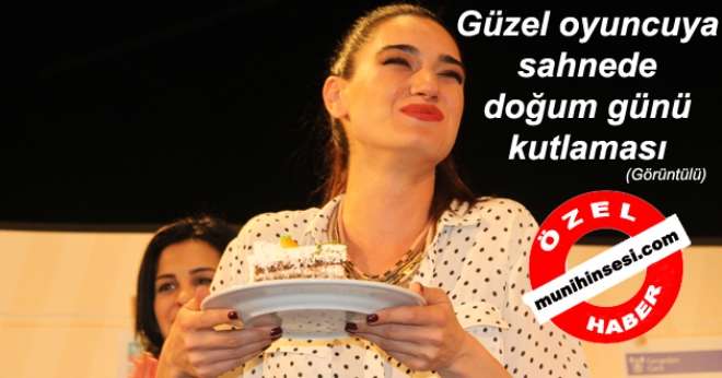 Münihte sahne alan Yetersiz Bakiye oyununda güzel oyuncu Hande Subaşıya sahnede doğum günü sürprizi düzenlendi.